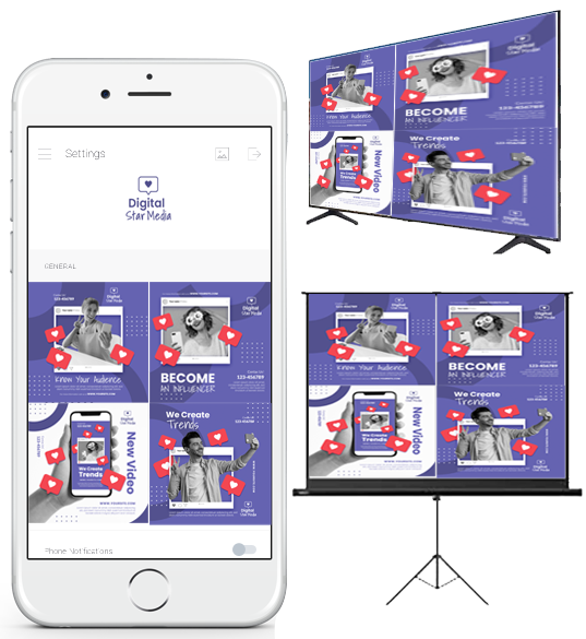 Seus eventos, serviços, cardápios com promoções e produtos podem ser expostos em smartTVs, PCs e no próprio site de forma prática e dinâmica.